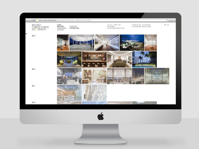 a ideia era criar uma forma clara de conhecer o portfolio, queríamos vincar o presente porque o escritório passava por um recomeço.